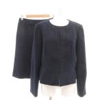 エマジェイムス セレモニースーツ セットアップ ノーカラージャケット フレアスカート ツイード 9号 紺 /SY47 ■ECA001 レディース