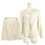 ロペ ROPE スーツ セットアップ ジャケット スカート ツイード 9 ベージュ ノーカラー 長袖 織り柄 /AH7 ■GY58 レディース
