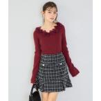 スカート インナーパンツ付きサイドレースアップスパンコールツイードタックフレアスカート