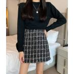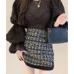 スカート アシンメトリーツイードハイウエストフェイクスカート