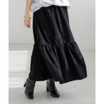 スカート 大人中厚手コーデュロイティアードフレアスカート ロング丈