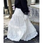 【SALE/70%OFF】BEAMS HEART WOMEN ティアード 刺繍スカート ビームス アウトレット スカート ロング・マキシスカート ベージュ ブラック グリーン