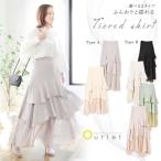 スカート 「低身長用サイズあり」ティアードフレアロングスカート