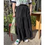 スカート ティアードロングボリュームフレアスカート