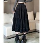 スカート ベロア調 レース ティアード ロング スカート