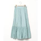 スカート 花柄ティアードロングスカート/ブルー・ピンク