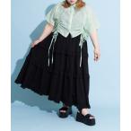 スカート 「LL〜6L 大きいサイズ」「WEB・一部店舗限定」ビンテージサテンティアードスカート