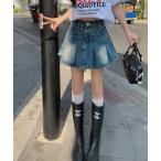 【店長一押し人気商品20%OFF 4/14 20時~】デニムスカート ハイウエスト 台形 ミニ ハイライズ デニム ミニ丈 ジーンズ レイヤード 韓国ファッション レディース 春 夏 秋 ブラック グレー ブルー ライトブルー アイボリー S M L XL JOCOSA 9104 即納
