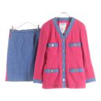 CHANEL シャネル デニム切り替え ツイードジャケット スカート セットアップ ピンク/インディゴ レディース