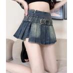 スカート ブロックプリーツフレアスカート デニム/ツイル