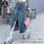 ロングスカート デニムスカート ボトムス レディース 女性 婦人 女子 Aライン タイト 細身 深めスリット フリンジ おしゃれ カジュアル セクシー