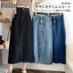送料無料 スカート デニム レディース 女性用 ボトムス ミモレ丈 ロング丈 無地 タイト 前スリット カジュアル おしゃれ シンプル 可愛い おでかけ 普段使い ボタン 大きいサイズ