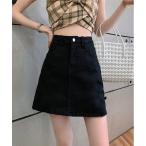 ハイウエスト Aライン デニム ミニ スカート 女性 レディース ボトム 春 夏 秋 冬 ショート丈 可愛い キュート 単色 無地 カジュア