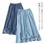 ボトムス ロングスカート デニムスカート 大きいサイズ 春秋 ひんやり ウェストゴム 薄手 50代 お洒落 40代 30代 Aライン 夏物 ふんわり