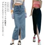 送料無料 スカート デニム レディース 女性用 ボトムス ミモレ丈 ロング丈 無地 タイト 前スリット カジュアル おしゃれ シンプル 可愛い おでかけ 普段使い ボタン 大きいサイズ