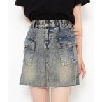 スカート ウォッシングデニムカーゴミニスカート
