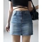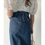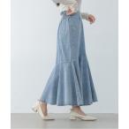 デニムスカート 「レースリボン付き」フリンジマーメイドスカート