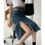 デニムスカート フロントスリット デニム タイト ロングスカート