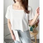 tシャツ デニムにもスカートにも合う着回しに便利な一枚♪ スクエアネック半袖カットソー レディース