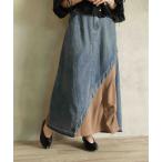 デニムスカート 「美シルエット」リボンデニムマーメイドマキシスカート