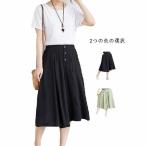 3色有り レディース スカート Aライン ミドル丈 膝下 ハーフレングス オールシーズン ハイウエスト 大人カジュアル 無地 定番 シンプル 上品 体型カバー S-2XL