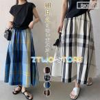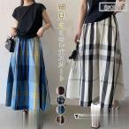 スカート ミモレ丈 レディース チェック柄 フレアスカート ハーフスカート ボトムス フレア ストライプ きれいめ 春 夏 美脚 脚長 母の日