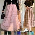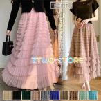 スカート 春 夏 フレアスカートロング丈 レディース シフォン ハーフスカート チュールスカート 体型カバー 優雅 カジュアル ふんわり 旅行