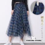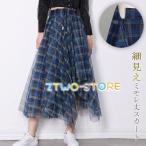 スカート 体型カバー レディース フレア チェック柄 チュール ロングスカート ハーフスカート マキシ ミモレ丈 着痩せ スカート 薄手 春 夏 秋