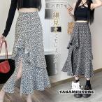 スカート 体型カバー レディース 花柄 スリット ロングスカート ハーフスカート マキシ ミモレ丈 着痩せ スカート 薄手 春 夏 秋 涼しい 卒業式
