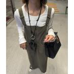 ジャンパースカート ハーフジップ ジャンパースカート Vネック ノースリーブ ワンピース