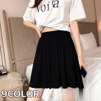 6色有り レディース スカート ショート丈 Aライン ハイウエスト ハーフレングス ミニスカート プリーツ フリルジッパーステッチ 無地 シンプル XS-5XL