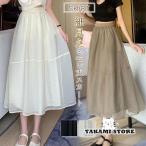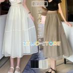 スカート 体型カバー レディース フレア チュール ロングスカート ハーフスカート マキシ ミモレ丈 着痩せ スカート 薄手 春 夏 秋 涼しい