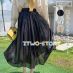 スカート 春 夏 フレアスカートロング丈 レディース シフォン ハーフスカート チュールスカート 体型カバー 優雅 カジュアル ふんわり 旅行