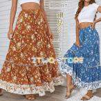 スカート 体型カバー レディース 花柄 スリット ロングスカート ハーフスカート マキシ ミモレ丈 着痩せ スカート 薄手 春 夏 秋 涼しい 卒業式