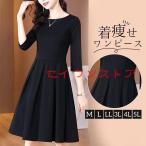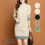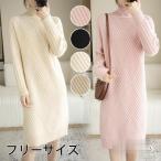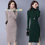 ニットワンピ レディース 長袖 ハーフハイネック リブ ワンピース 膝丈 スリム 女性用 ミディアム丈ワンピース ニット 春秋物 冬物