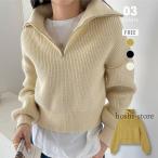 ニット セーター ハーフジップ プルオーバー ショート丈 トップス 長袖 パフスリーブ ハイネック Vネック レディース クロップド カジュアル 大人 かわいい