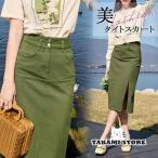 レディース スカート デニム ミドル丈 膝下 ハーフレングス ボトムス オールシーズン スリット ボタン ハイウエスト スリム 大人カジュアル 無地 定番 S-2XL
