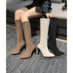 ブーツ レディース ロング丈 厚底 ぺたんこ ラウンドトゥ PU サイドジップ プラットフォーム 黒 ロングブーツ ブーティ 美脚 おしゃれ