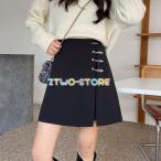 レディース スカート ショート丈 Aライン ハイウエスト ハーフレングス アシンメトリー ミニスカート ボトムス 無地 ブラック 大きいサイズ 体型カバー S-4XL