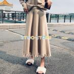 3色有り レディース スカート ニット Aライン ミドル丈 膝下 ハーフレングス ハイウエスト ウエストゴム 伸縮性 無地 定番 シンプル 上品 大きいサイズ