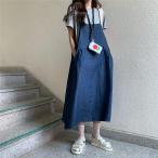 【タイムセール】サロペットスカート デニムオールインワン ジャンパースカート ロング ハーフ丈 デニム サスペンダースカート ワンピース レディース