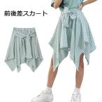ウエストゴム 膝丈スカート 前後差 ミモレスカート ひざ丈 チェック柄 ミモレ丈 レディース ボトムス ハーフ丈 体型カバー スカート 美脚 送料無料 きれいめ