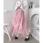 スカート フリフリボリュームチュールロングスカート