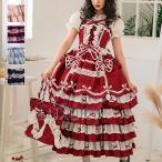 【納期40日】ロリータファッション ジャンパースカート のみ 5色 リボン たっぷりフリル ひざ下丈 ミモレ丈 お嬢様 童話風 スウィート かわいい 秋 イベント