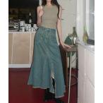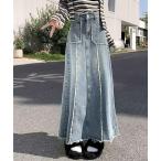 デニムスカート フリンジヘムデニムロングスカート