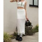 スカート ミックスクロシェフリンジスカート