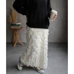 スカート フリンジチュールロングスカート