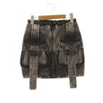 フェンディ FENDI ロゴバックルデニムタイトミニスカート フリンジ 38 グレー /DO ■OS レディース