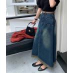 ハイウエストボリュームフレアデニムスカート ボトムス レディース スカート マキシ丈 ロング丈 デニム フリンジ Aライン 定番 カジュアル