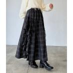 スカート チェックフリンジラップ風スカート(セットアップ可)